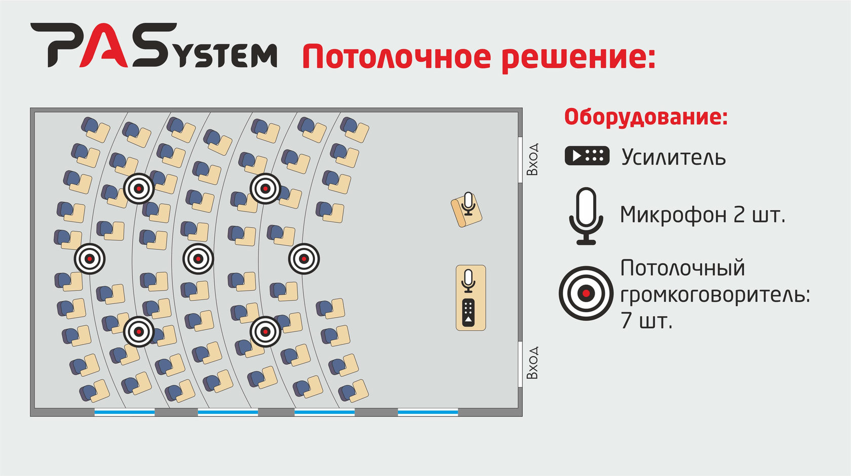 Вариант потолочного размещения фонового звука до 450 кв.м.
