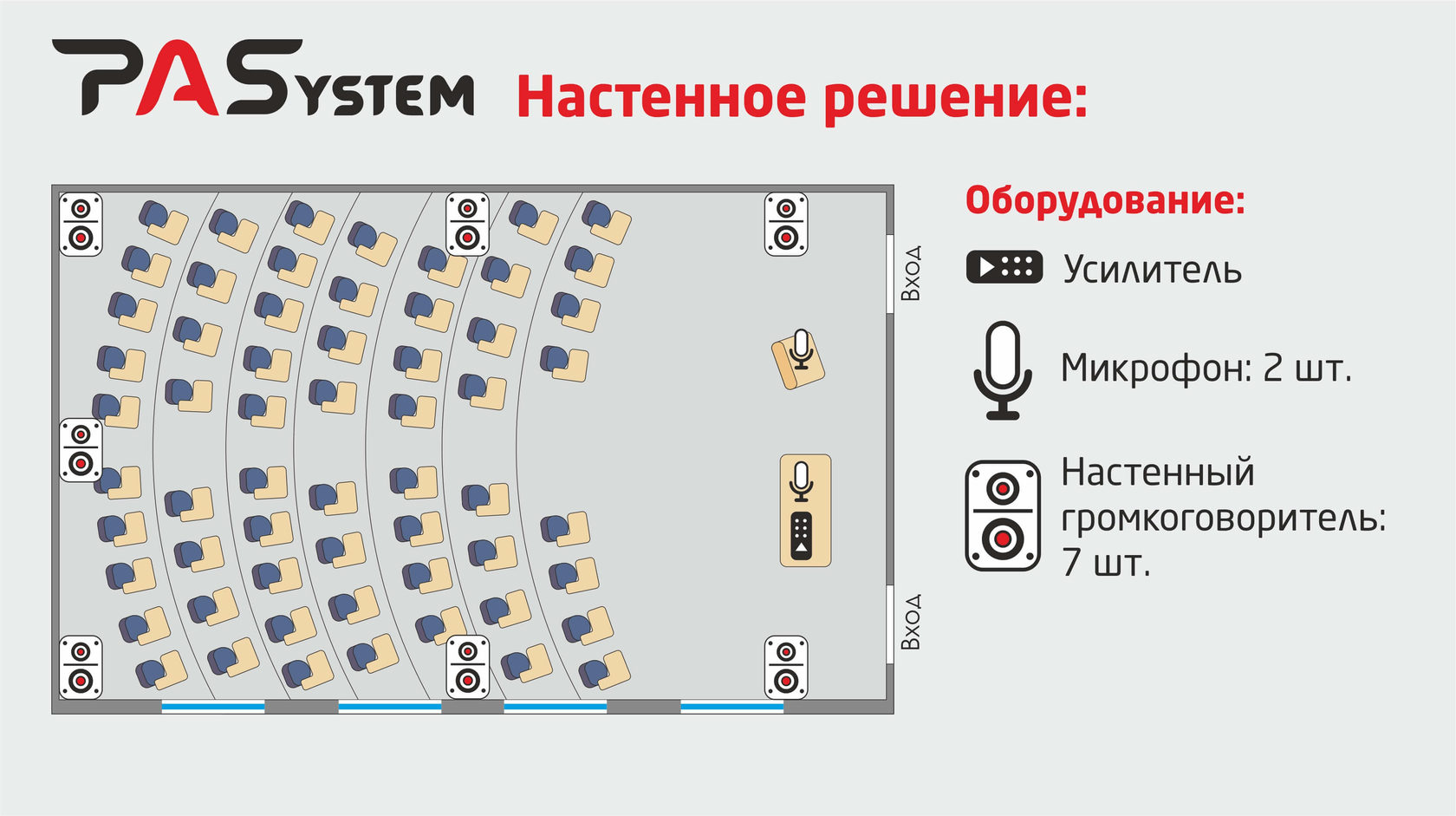 Вариант настенного размещения фонового звука до 450 кв.м.